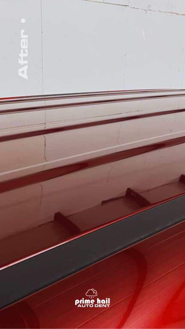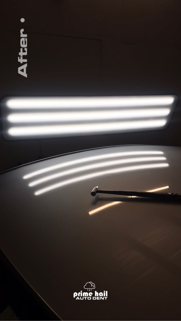This happens on extremely large dents, what we lovingly at Prime Hail Auto Dent call “soup bowls.” Sometimes hail storms can create “soup bowls” that our world-class PDR technicians just can’t get flat. When that is the case, we will get the panel as flat as possible and then have the panel sanded down and painted to ensure it’s perfect.